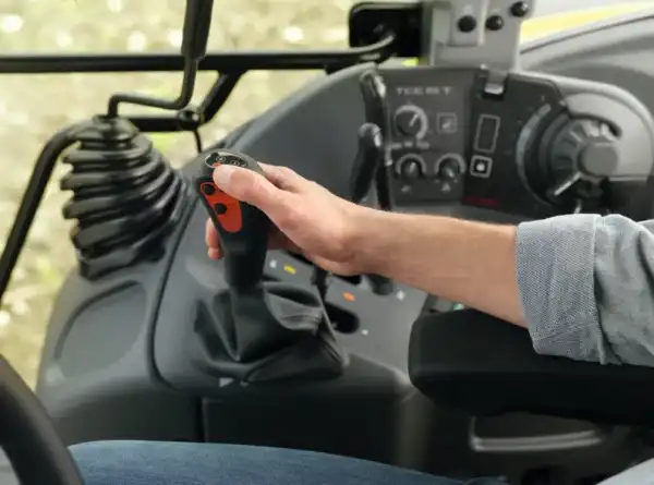 Для керування ARION 600 вам не потрібен ані важіль перемикання передач, ані педаль зчеплення. Вибір передачі відбувається за допомогою натискання кнопок на важелі ручного керування подачею пального, і ви швидко й зручно перемикаєте всі чотири ступені під навантаженням та групи.