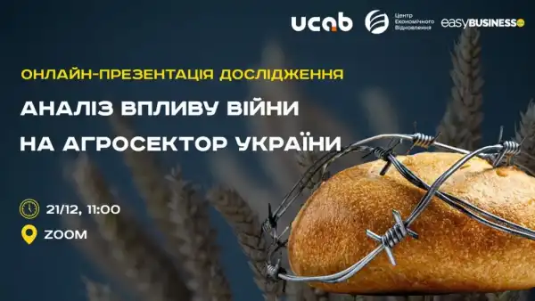 Нещодавно команда аналітиків Центру економічного відновлення та EasyBusiness, координуючись з УКАБ, здійснила детальне вивчення впливу широкомасштабної війни на українську галузь сільського господарства. Результати цієї роботи були представлені під час онлайн-зустрічі УКАБ у грудні 2022 року. В рамках цієї події були обговорені головні труднощі, з якими зіткнулися агровиробники внаслідок повномасштабної війни, а також обговорено можливі варіанти вирішення для поліпшення становища аграріїв.
