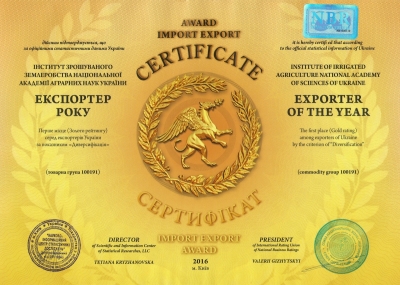 – Відзнаку «Експортер року» ми отримали за продаж пшениці селекції Інституту зрошувального землеробства в Турецьку Республіку. Ця країна за природно-кліматичними обставинами дуже подібна до південної частини України. Турецька фірма «Семіла Сід», щоб не витрачати значні кошти і час на створення нових сортів озимої пшениці (поряд із нутом є основною культурою у виробництві і структурі споживання в Туреччині. – Ред.), обрала простіший шлях – відібрала 5 сортів із різних регіонів України і протягом 3 років випробовувала їх у Туреччині. Херсонський сорт Марія селекції Інституту зрошуваного землеробства НААН за врожайністю, якістю зерна, стійкістю до шкідників і захворювань виявився оптимальним для турецьких кліматичних умов і виробничих реалій. У результаті «Семіла Сід» придбала в Інституті 20 т насіння на суму 0,5 млн грн. З кожного проданого кілограма нашому Інституту будуть надходити роялті в сумі 5-8% від реалізації вирощеного там насіння.