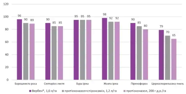 Рис. 1. Ефективність дії фунгіциду Вербен®. Результати агрономічних випробувань