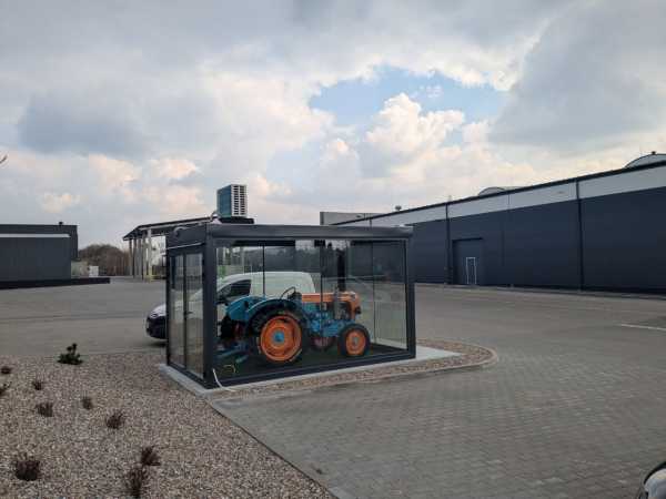 Це автоматична машина, яка обгортає палети плівкою. Вона щільно фіксує вантаж і унеможливлює будь-яке стороннє втручання. Таке пакування зручне для транспортування і водночас захищає бренд, запобігаючи потраплянню продукції невідомого походження на ринок.